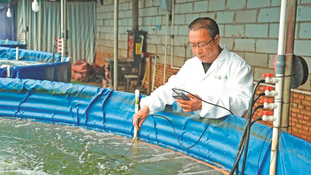 “虾不像鱼能主动抢食,吃不完的饵料会沉在池底腐烂,污染水质,进而影响虾苗生长,严重的还会导致虾苗死亡,所以必须少量多次投喂。”颜琦说,基地每天分3次到4次投喂专用虾料,每次投喂前都会根据虾苗的生长阶段调整饵料用量,投喂后半小时内,还会检测水质变化,一旦发现pH值偏离7.5至8.5的适宜范围,就要及时用动保产品调整,确保虾苗“吃得好、住得舒适”。