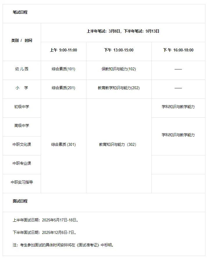 2025年下半年中小学教师资格考试(笔试)将于9月13日举行。具体日程安排↓↓