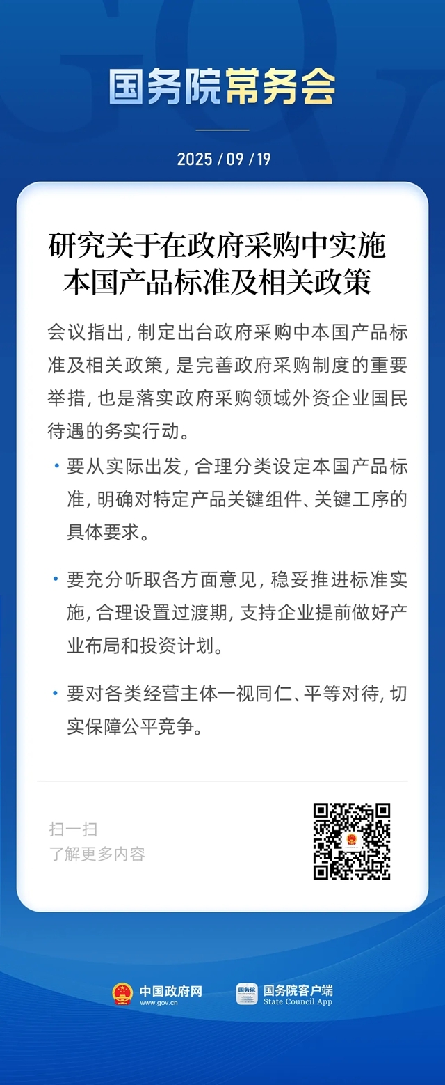 国常会:研究关于在政府采购中实施本国产品标准及相关政策_政策解读_中国政府网