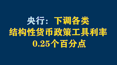 央行:下调各类结构性货币政策工具利率0.25个百分点