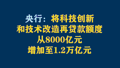 央行:将科技创新和技术改造再贷款额度从8000亿元增加至1.2万亿元