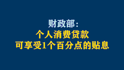 财政部:个人消费贷款可享受1个百分点的贴息